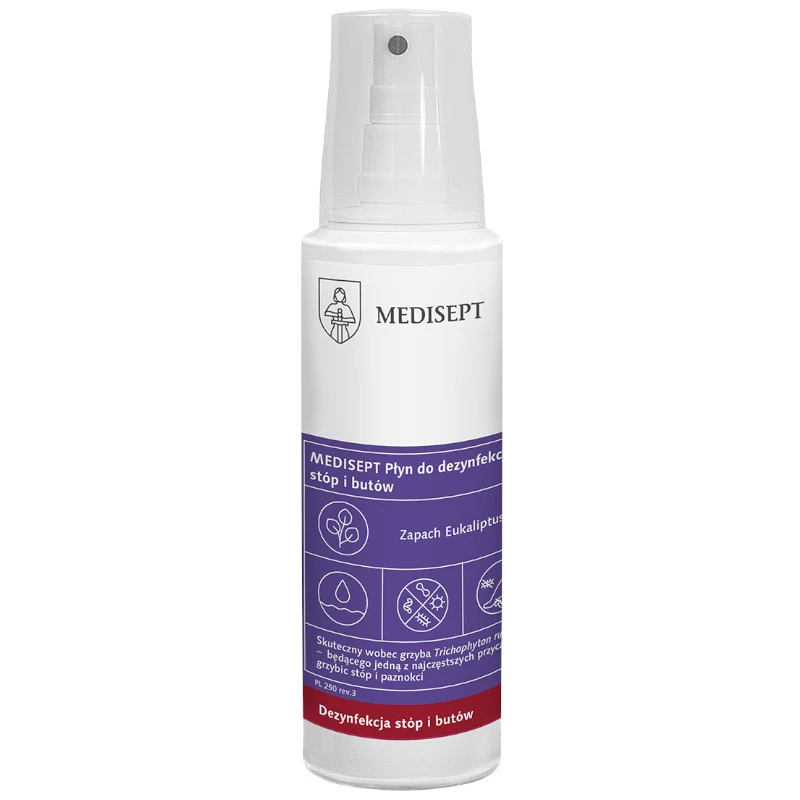 Płyn Medisept do dezynfekcji stóp i do dezynfekcji wnętrza obuwia stanowi wyrób medyczny. Ma delikatny, eukaliptusowy zapach. Wykazuje działanie bakteriobójcze, bójcze wobec prątków gruźlicy, drożdżakobójcze, bójcze wobec wirusów osłonkowych i ograniczone wirusobójcze (wobec Rotawirusa, Norowirusa). Skuteczny wobec wirusa SARS CoV-2. Do zastosowania w wielu branżach i obiektach.