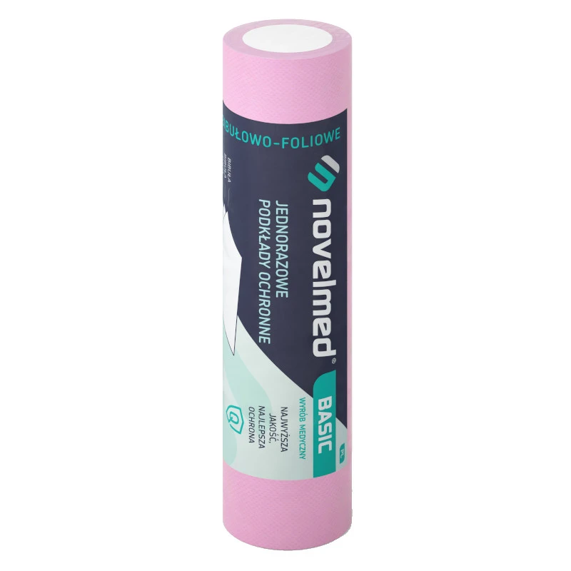 Jednorazowy podkład ochronny Novelmed® Basic w różowym kolorze, o szerokości 33 cm, z perforacją co 48 cm, o łącznej długości 19,2 mb, wykonany jest z dwóch warstw bibuły o wysokiej jakości, zlaminowanych z jedną warstwą folii ochronnej. 1 rolka zawiera 40 osobnych odcinków ręcznika. Oznaczenie perforacji ułatwia oderwanie fragmentu w odpowiednim miejscu. Różowy podkład kosmetyczny Novelmed® Basic jest miękki i przyjemny w dotyku, lekki, estetyczny, funkcjonalny i uniwersalny. Jest nieprzemakalny, cechuje go duża wytrzymałość na rozerwanie. Ma szeroki zakres zastosowania.